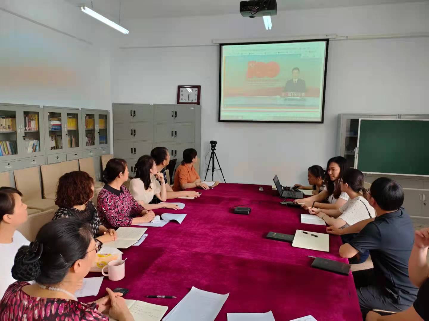 7月1日上午,0638太阳集团官网党委组织全院师生党员集体收看“建党100周年庆祝大会”现场直播,邵丽君书记主持会议,共55名师生党员参加。