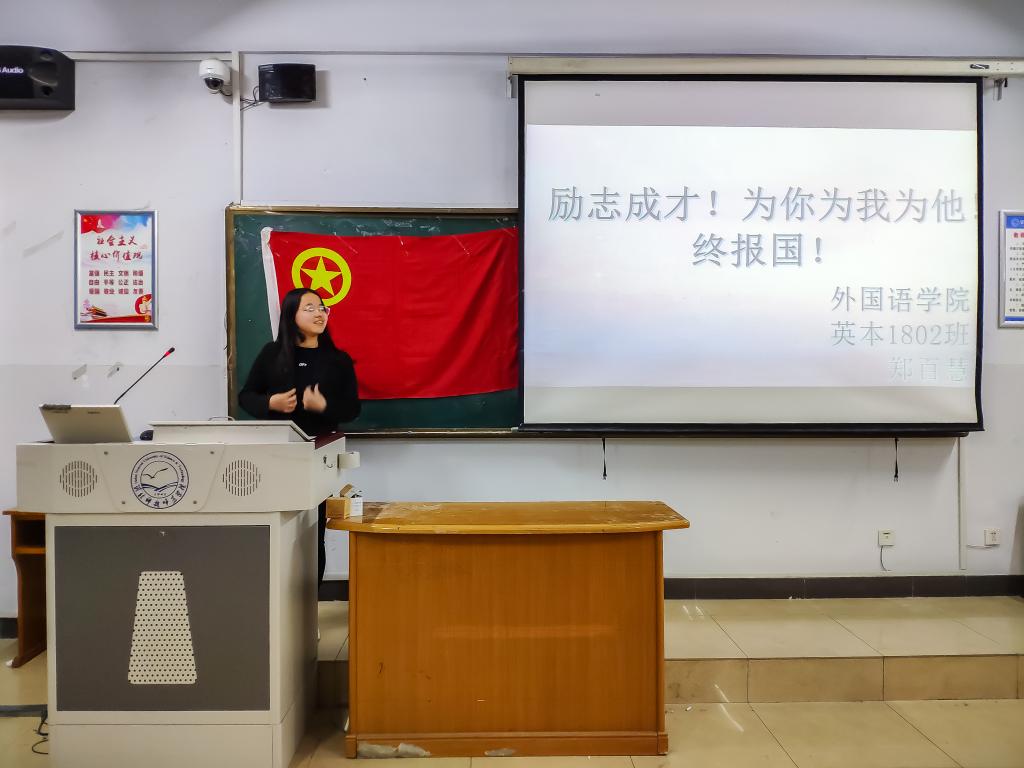 英语1901班邵新然以《忆百年征程,续筑梦新篇》为题,结合自己学习生活的切身体会和在学生会工作的点点滴滴,感恩党和国家为人民群众带来的幸福生活。经过激烈角逐,比赛评出一二三等奖。其中英语2004班戴宇飞表示:“听了他们的演讲,重温了党的光辉历史,深切体会到党的伟大与光荣,深切感受到我们的青春和梦想与祖国的发展紧密相连”。