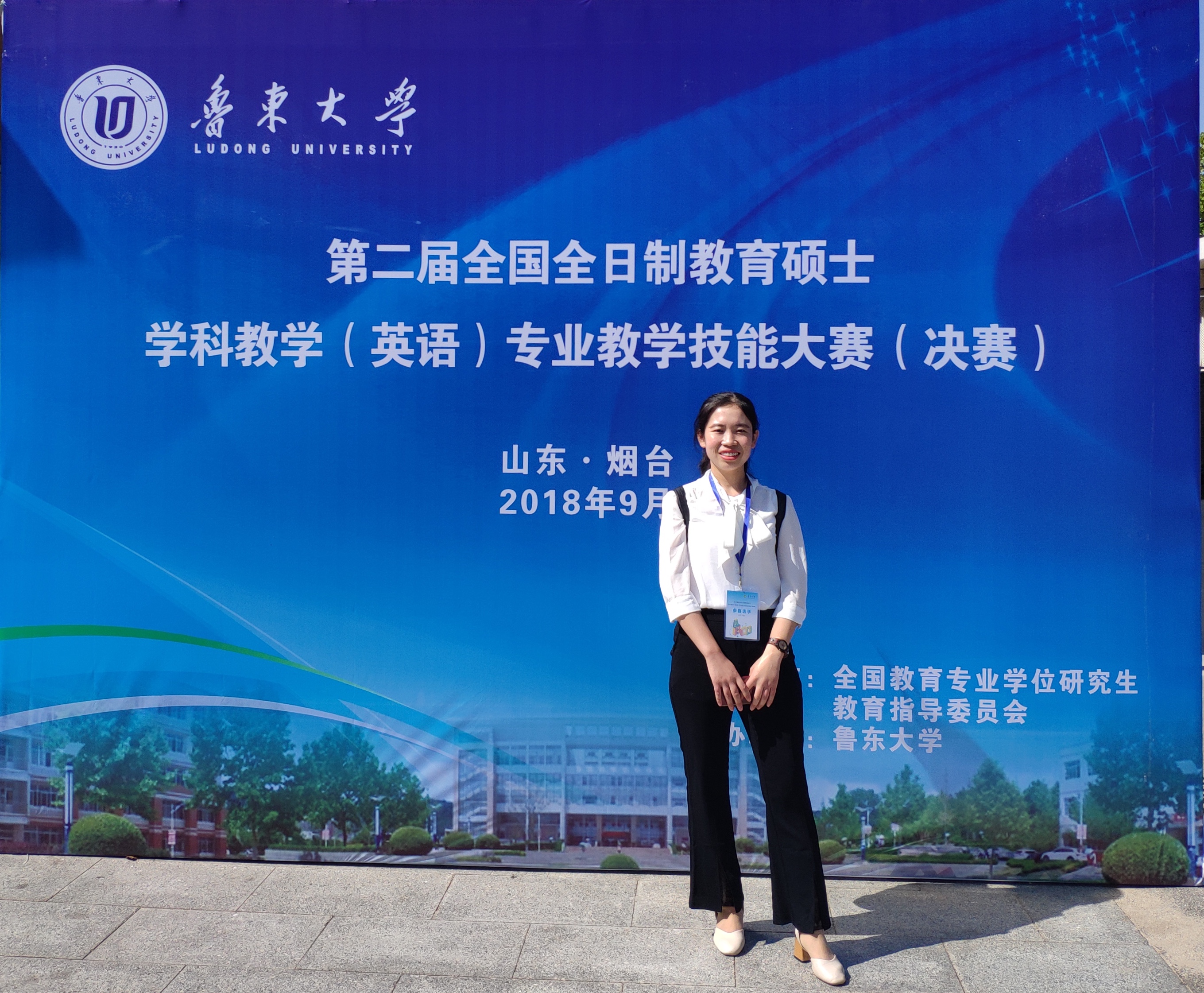 2018年9月21日至23日,第二届全国全日制教育硕士学科教学(英语)专业教学技能大赛(决赛)在鲁东大学拉开帷幕。我校我院2017级学科教学(英语)专业研究生赵蔚蔚参加决赛,在模拟讲课和现场答辩两大环节中展示出了我校研究生良好的学科素质和精神风貌,并获得优秀教学设计奖。
