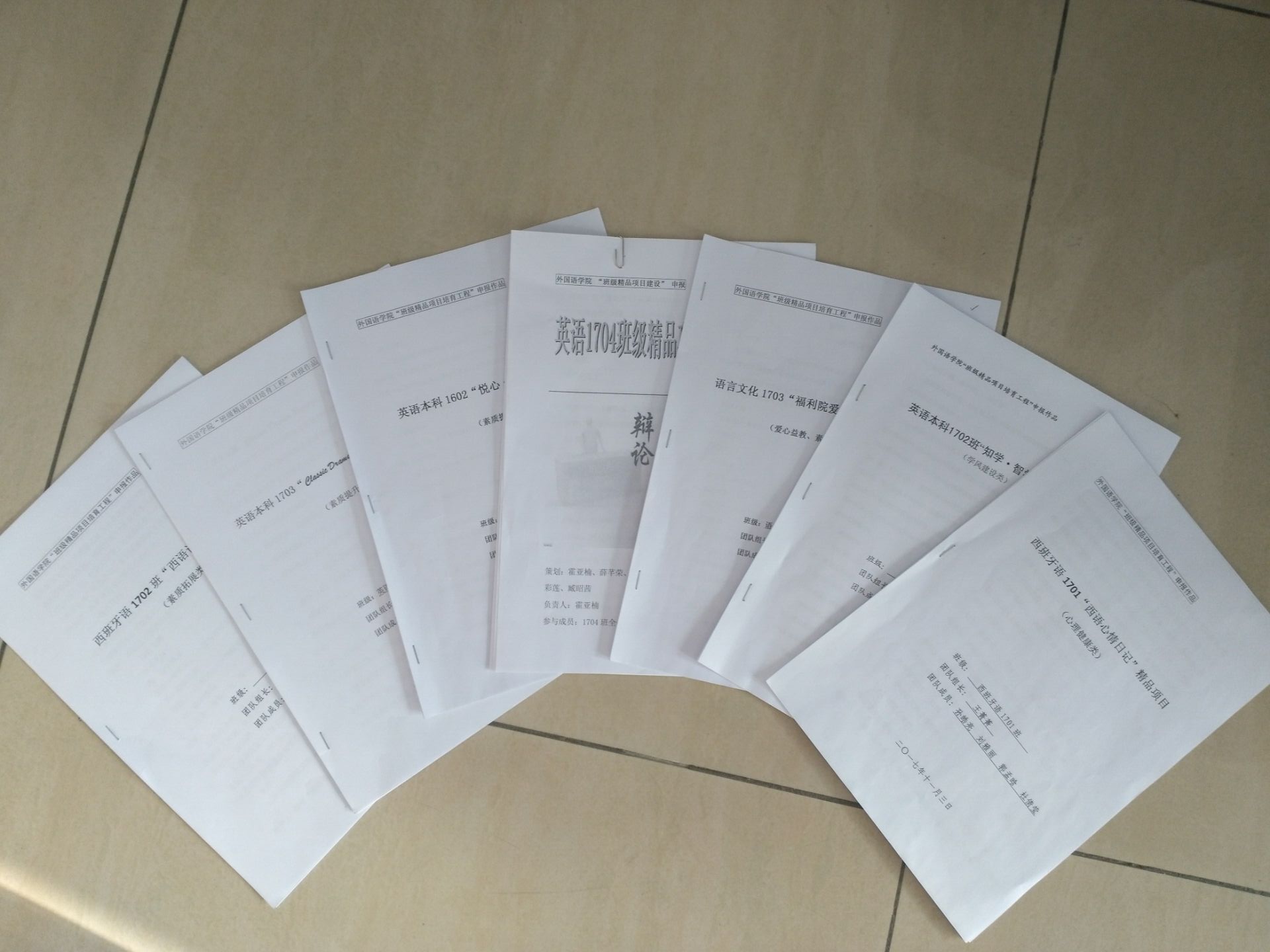 0638太阳集团官网“班级精品项目培育工程”以“精品工程,培育外语精英人才”为主题,鼓励各专业班级根据专业特点、班级特色开展理想信念、学风建设、素质提升、文娱活动等方面班级活动。经过持续的宣传动员,0638太阳集团官网共有17个专业班级参加“班级精品活动”的申报。学院根据班级申报书中活动意义、持续时间、学生参与度、目标效果等衡量指标,确定英语本科1703班“经典话剧重演”项目;英语1602班“悦心·乐度”班级凝聚项目;英语本科1701班“身体灵魂在路上”素质拓展项目;语言文化1703班“福利院爱心活动”公益项目;英语1704班“辩论会”素质提升项目;西语1701班“心情日记”心理健康项目;西语1702班“西语论道”素质提升项目等7个项目为0638太阳集团官网第一批“班级精品活动”立项项目。接下来,学院将借鉴科研项目的管理考核机制,通过中期考核、终期验收等形式强化对立项班级精品项目的管理和指导,并努力孵化一批在学校有影响力、对学生素质提升有效果的优秀班级成果。