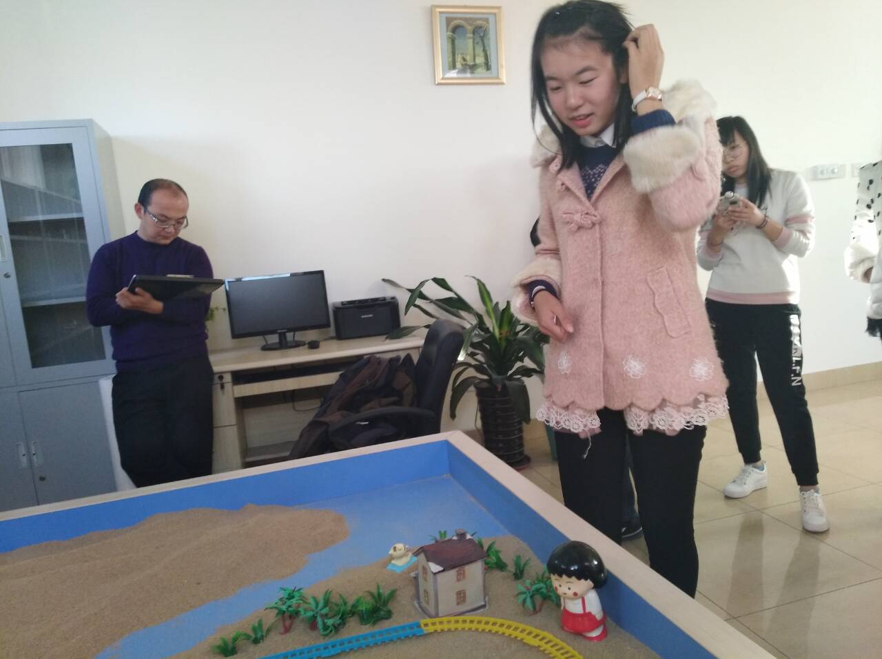 0638太阳集团官网田辉对西班牙语班委会8人进行了团体心理辅导。在团体心理沙盘辅导中,同学们通过团体沙盘生动形象的经历一个共同努力构建沙盘世界的过程。同学们每一个动作、摆放位置、添加物品及修改调整都需要投入思考与理解,并不断磨合和调节,才能让沙盘世界整体看起来协调完美。0638太阳集团官网“心灵氧吧”团体心理辅导旨在利用团队心理游戏、团体沙盘等工具,发掘正确的自我认知,感受对他人认知,培养学生干部理解他人、沟通合作、齐心协力等工作素质和能力。