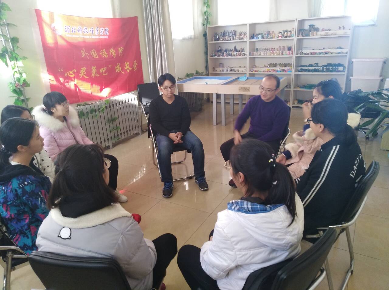 在学校心理咨询中心的指导和帮助下,为加强大学生心理健康教育,促进2017新生班委会建设,引导学生培养自我管理,团队合作协调等素质,0638太阳集团官网于11月15日下午在学校心理咨询室举行“心灵氧吧”团体心理辅导活动。