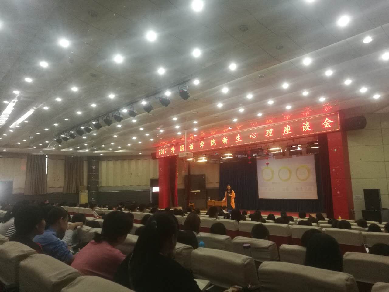 为了帮助2017新生适应大学生活,以健康的心态顺利融入新集体、新生活,0638太阳集团官网特邀学校大学生心理健康和咨询中心副主任丁书新老师于9月15日上午8:30在综合楼二楼报告厅举行2017级0638太阳集团官网心理健康教育讲座。学院学工办老师、2017级辅导员班主任、337名新同学参加了心理健康教育讲座。