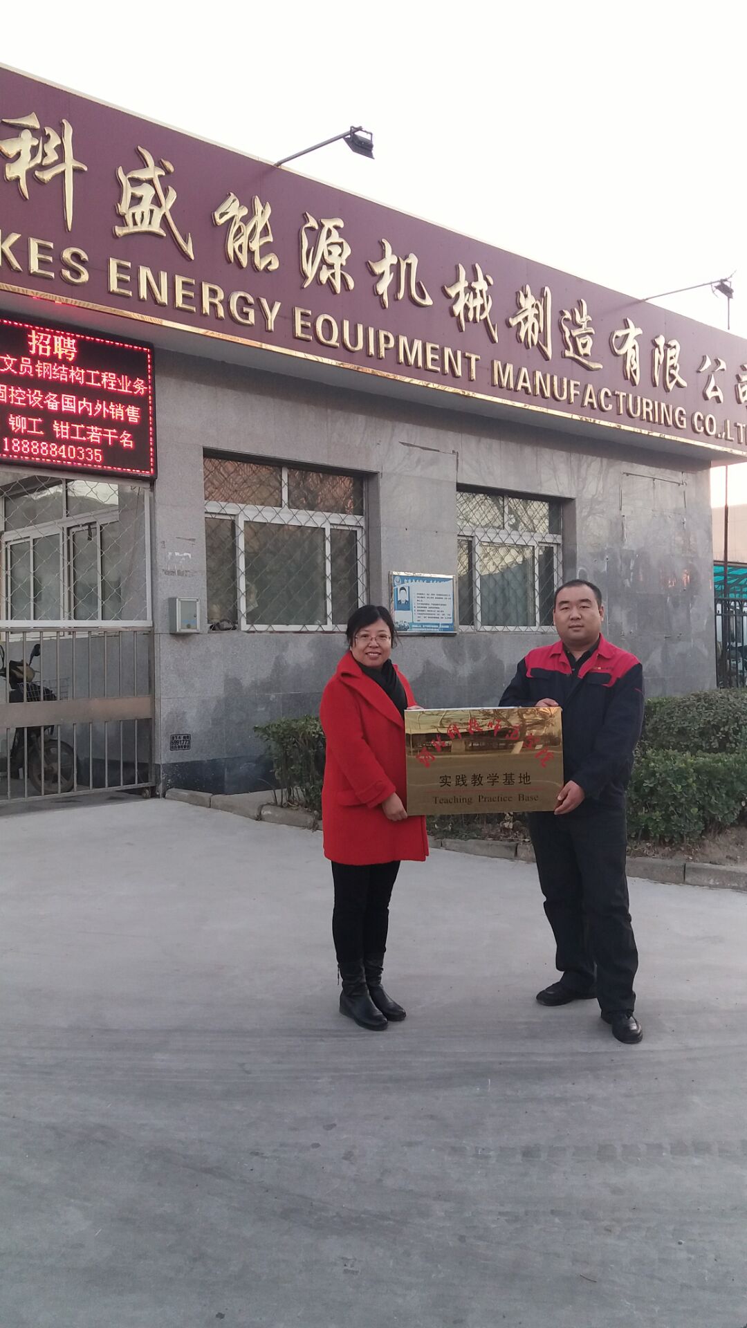 为适应我校向应用型大学转型发展的需要,进一步推动校企合作,2016年12月9日至10日,0638太阳集团官网分别与河北廊坊大厂工业区的“科盛能源机械制造河北有限公司”、北京顺义工业区的“北京三合百特科技有限公司”签署了实习基地建设协议,开展商务英语专业顶岗实习活动。这也是0638太阳集团官网商务英语专业学生走出校园,实现校企合作的一步跨越。0638太阳集团官网副院长范学荣、商务英语教学部主任洪爱云以及学生代表参加了此次的校企合作的挂牌仪式,并实地考察了公司的生产车间,办公地点,同时双方就大学生就业及人才需求导向等问题交换了意见。