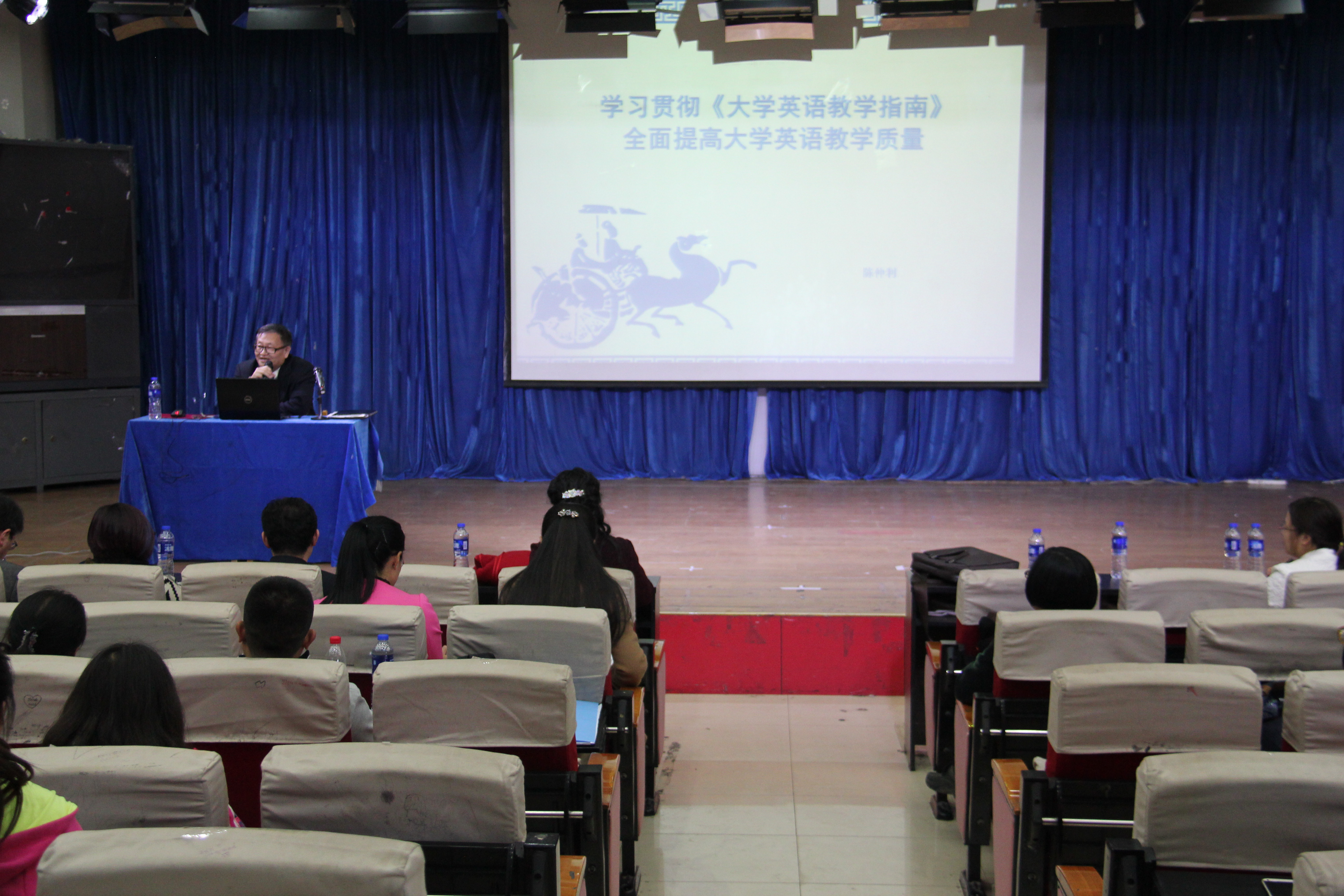 2016年4月14日下午,0638太阳集团官网邀请教育部高等学校大学外语教学指导委员会副主任,全国大学英语四、级考试委员会委员,全国独立学院外语教学协作委员会主任陈仲利教授来我校作题为“学习贯彻大学英语教学指南,全面提高大学英语教学质量”的报告。东北大学秦皇岛分校、东北石油大学秦皇岛分校、环保学院、建材学院等秦皇岛各高校英语教学负责人和教师参加了此次报告会。