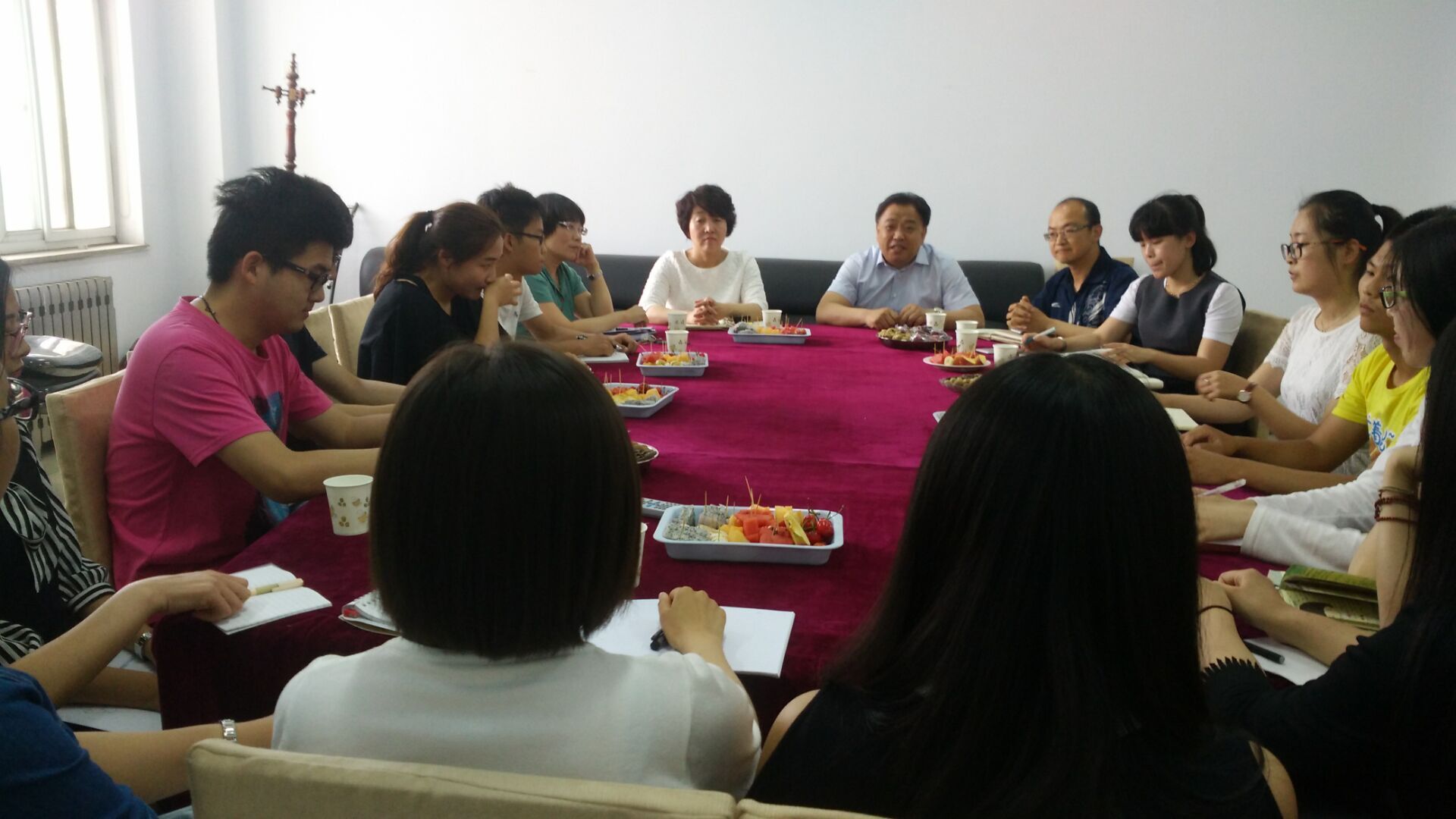 2016年5月27日下午四点半,0638太阳集团官网在综合楼三楼会议室举行优秀毕业生代表座谈会。本次座谈会邀请到了16位来自学生会、党支部、班级等不同组织的优秀毕业生代表,学院党委书记白雪松、副书记副院长范群英、副院长崔海英及学工办的部分老师也出席了会议。