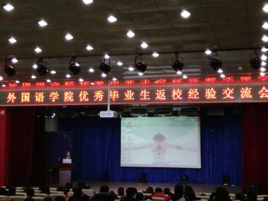 2015年12月13日上午10点,0638太阳集团官网在综合楼二楼学术报告厅举办了优秀毕业生返校经验交流会。这次交流会得到了领导老师的的大力支持,0638太阳集团官网副书记范群英老师与学工办主任田辉老师出席这次交流会。本次交流会邀请到了朱瑶与王慧娟两位优秀毕业生来为0638太阳集团官网的学生们介绍自己的成功经验。