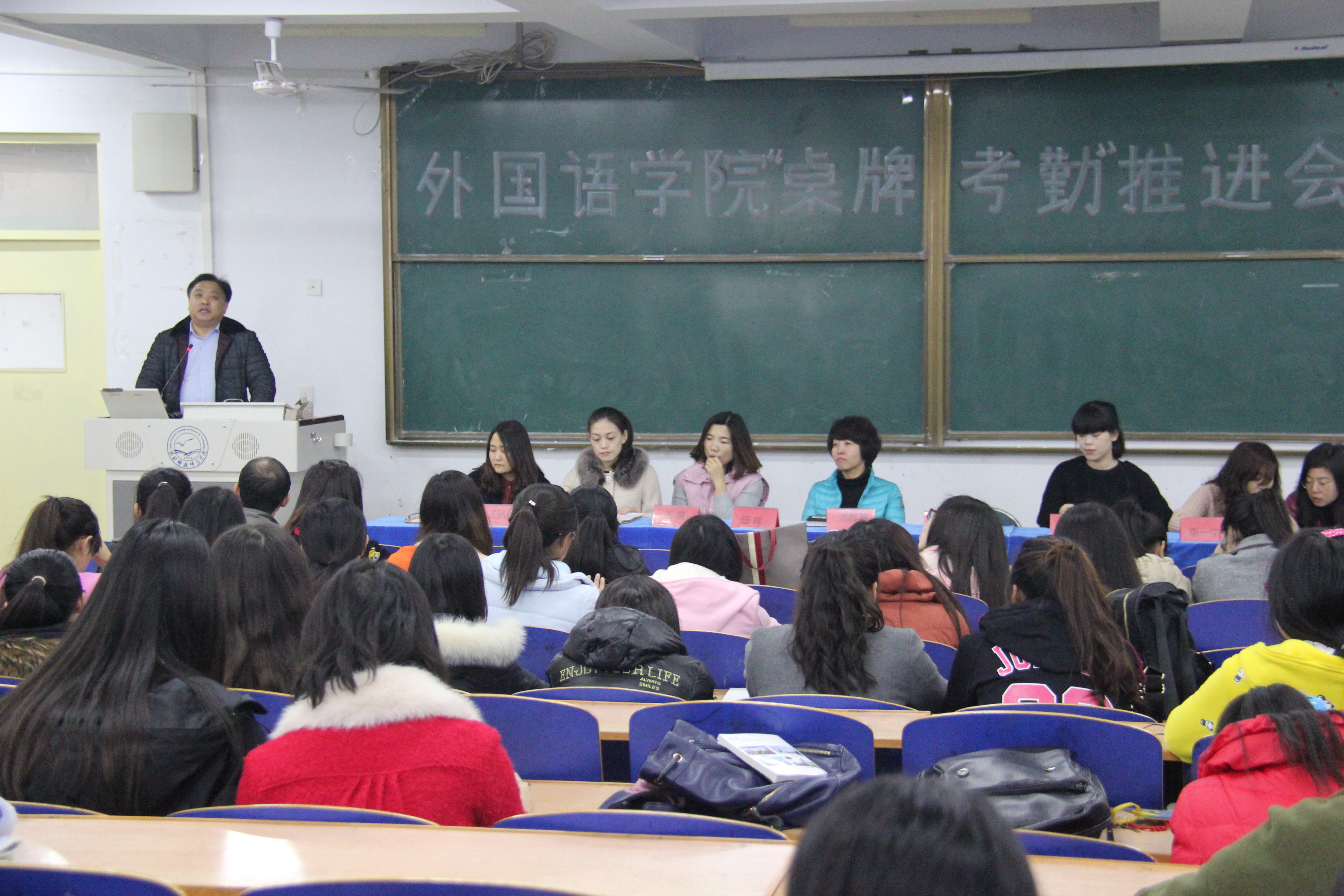 为响应学校“三风建设”要求,强化课堂考勤,优化课堂秩序,提升课堂教学效果,0638太阳集团官网于2016年3月3日中午在教学楼212召开了推进课堂桌牌管理动员会。学院党委书记白雪松、副书记副院长范群英、全体辅导员及近160名学生干部和学生代表参加了会议。