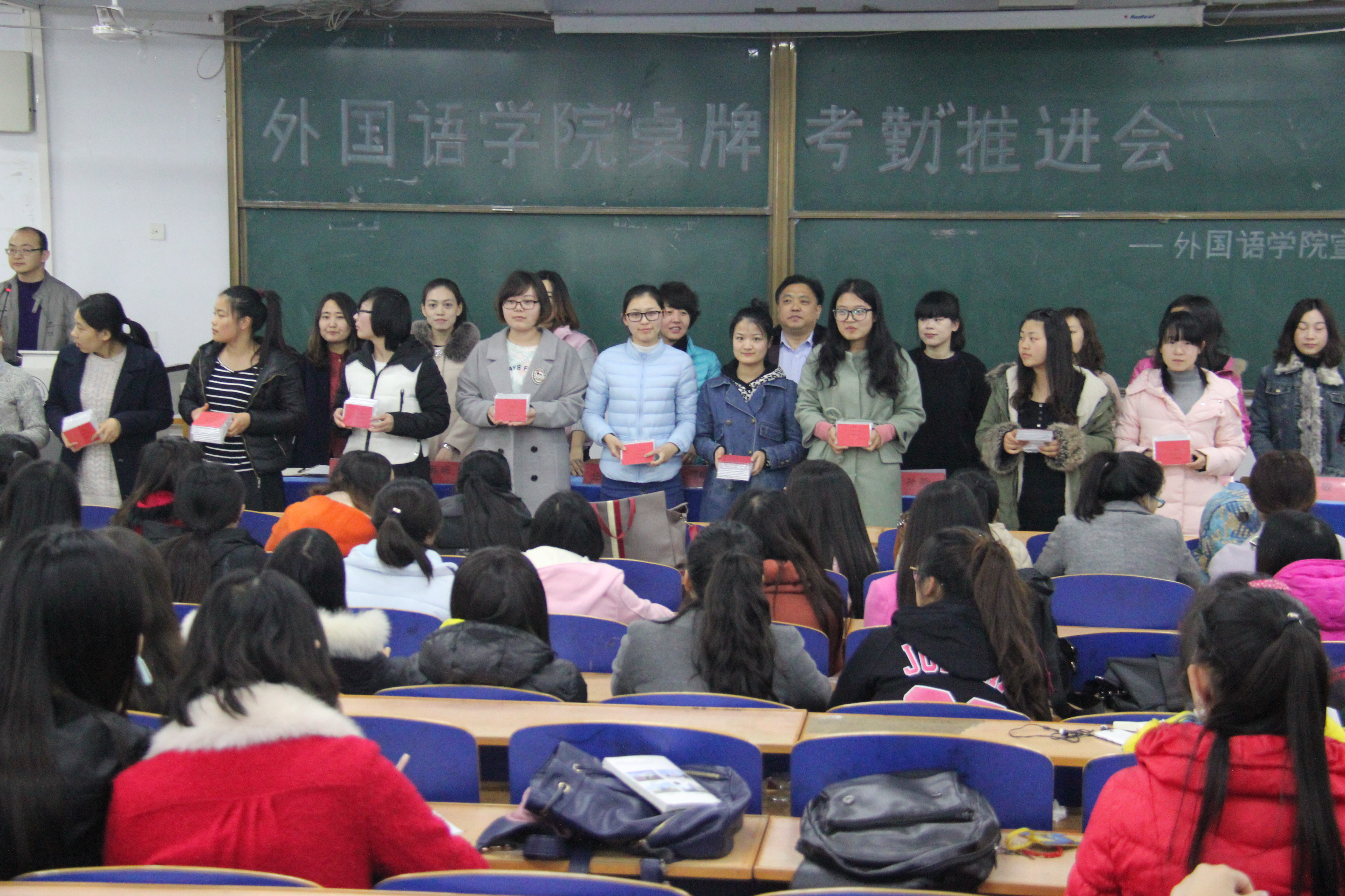 动员会上,学工办主任田辉宣读了《0638太阳集团官网实施课堂桌牌制管理细则(暂行)》,学院领导和老师们将桌牌颁发给各班级代表。最后,学院党委书记白雪松对师生提出了几点希望:课堂桌牌管理是学院继“无手机课堂”后进行的又一项“三风”建设的特色活动,通过不断创新课堂管理,使学院“三风”建设走向精细化。希望全体学生通过践行课堂考勤桌牌制的要求,养成良好的课堂学习习惯。全体辅导员老师和学生会干部要加强监督考核,共同构建0638太阳集团官网考勤严谨、沟通顺畅,高质有序的和谐课堂。