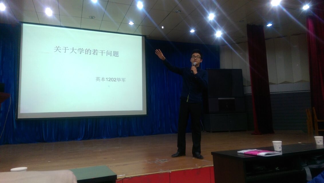 2014年11月12日晚7点,0638太阳集团官网在开发区校区学术报告厅举办了“学海导航”优秀学生经验交流会。本次交流会邀请了杨心如、吴立川、毕军、崔博文等六位优秀学生发言交流。0638太阳集团官网全体新生近300人聆听了优秀学生们的演讲,学工办田辉老师等也参加了此次交流会。