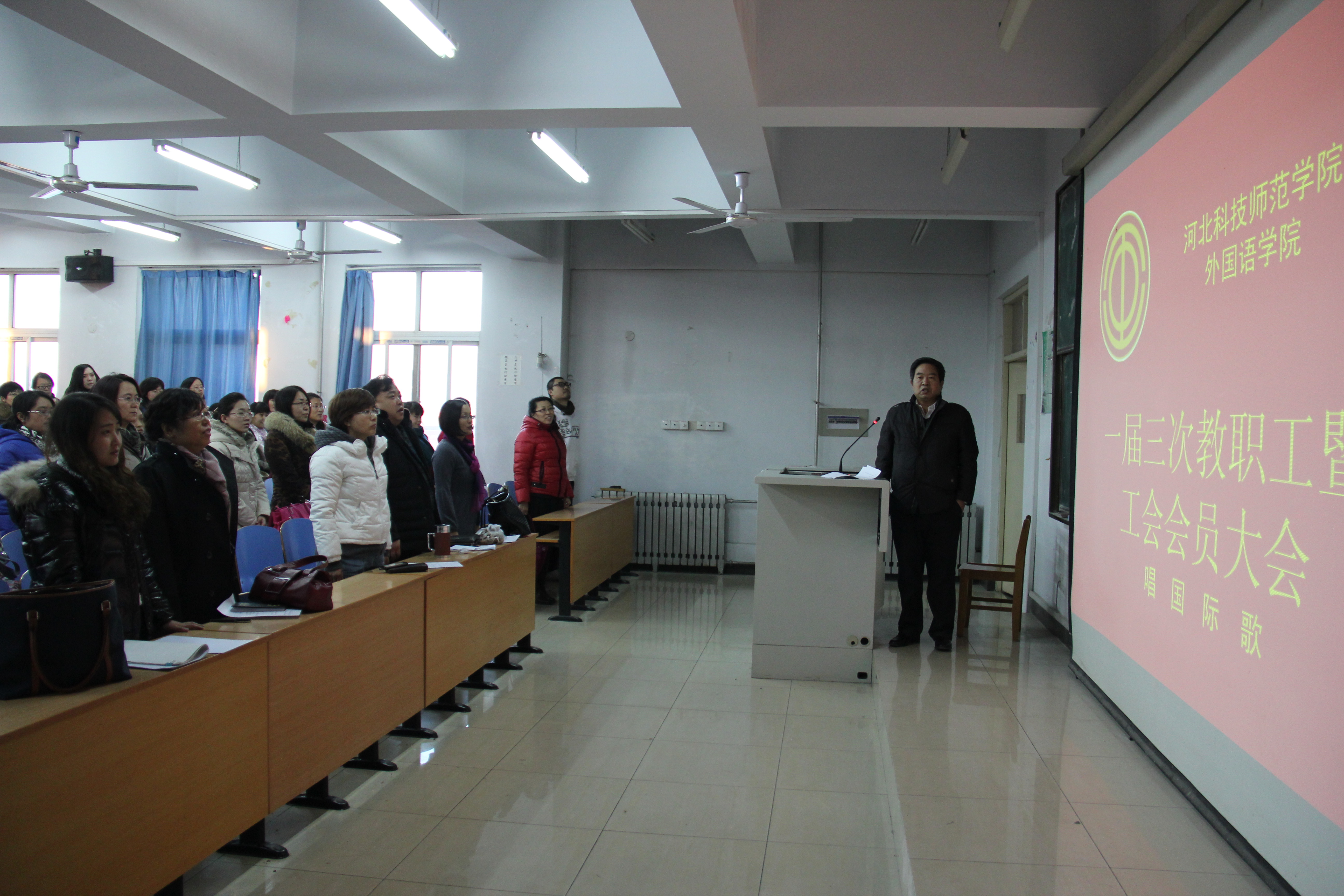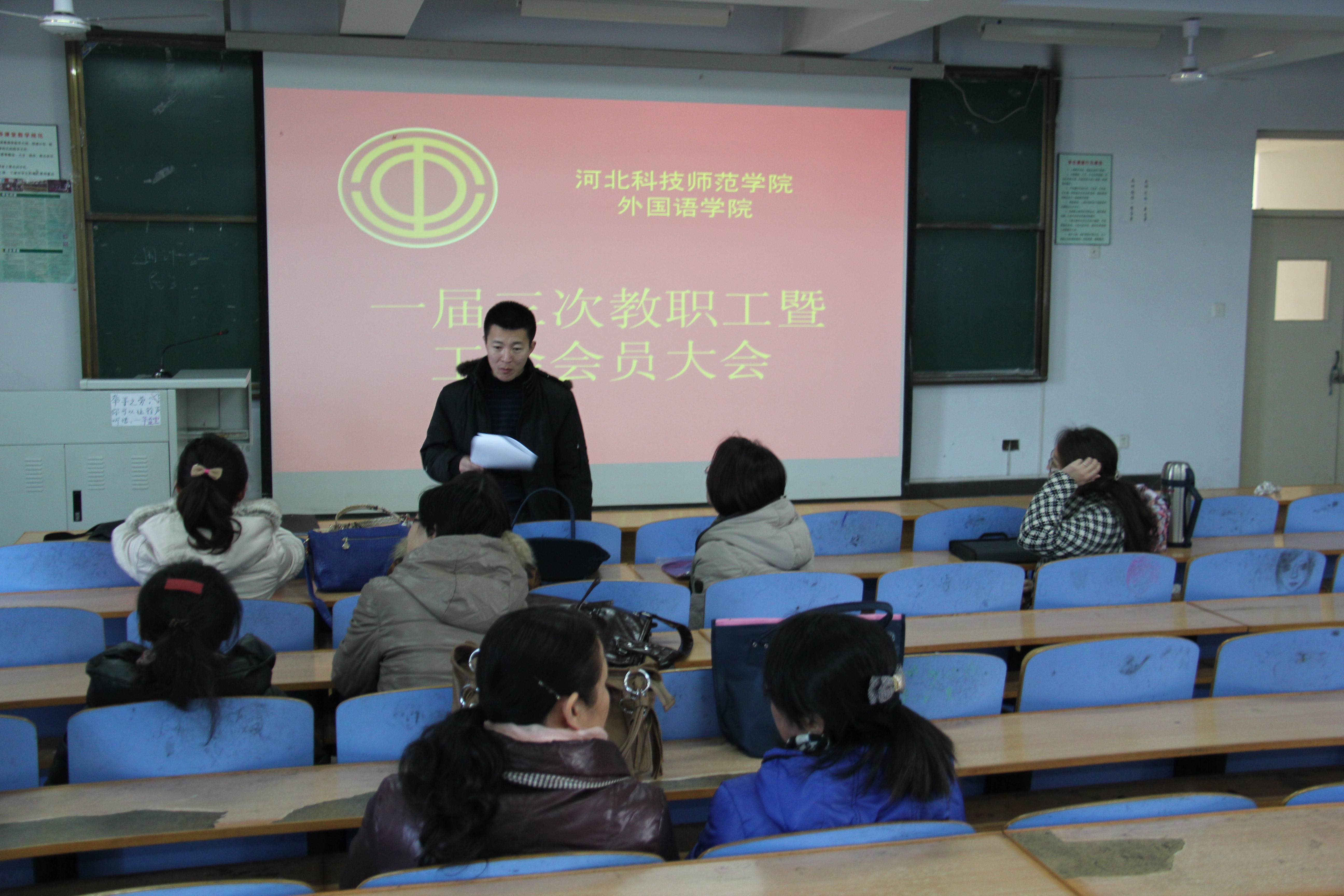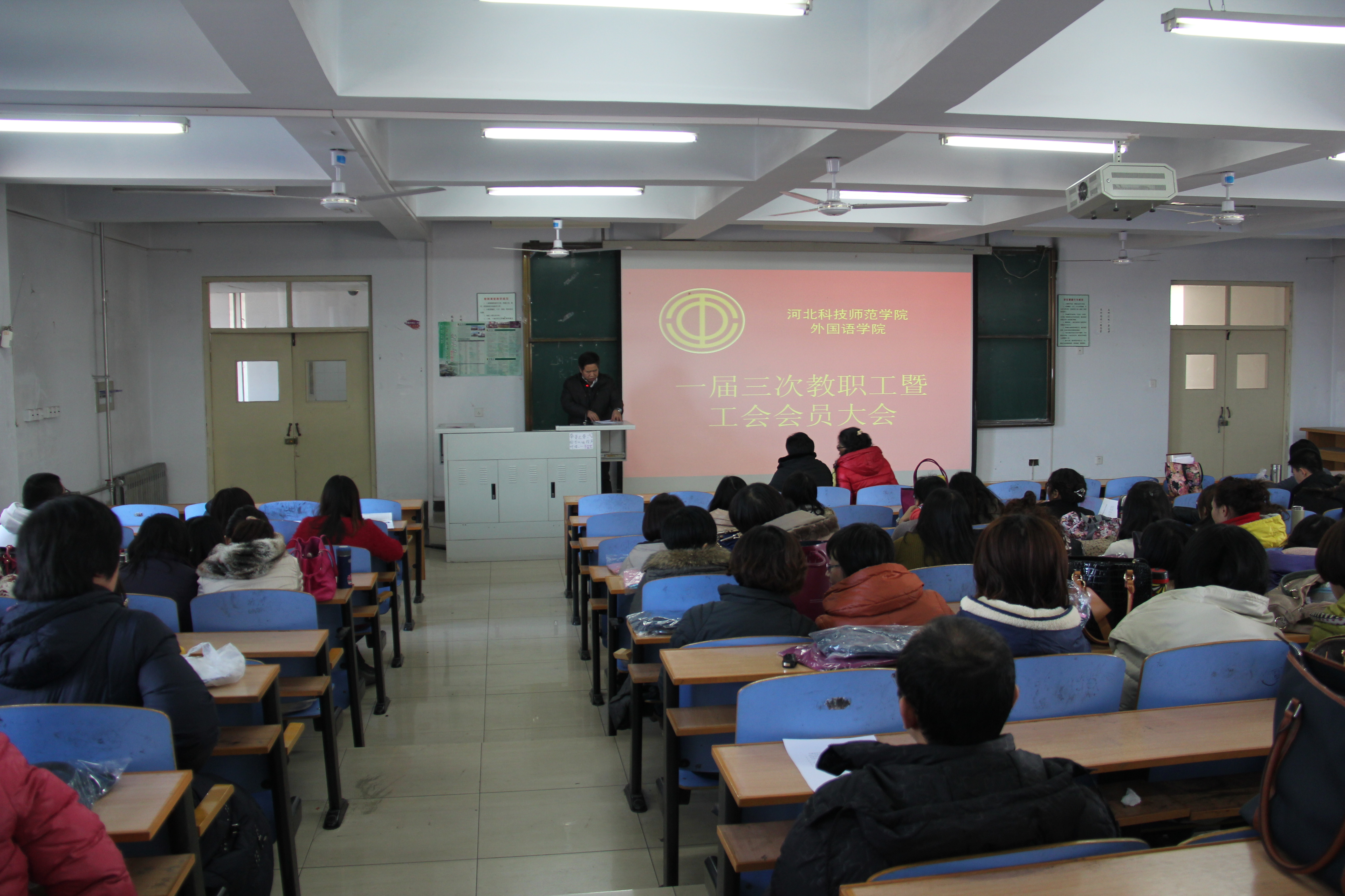 2013年12月26日下午2点,0638太阳集团官网在开发区校区综合楼312室召开一届三次教职工暨工会会员大会。0638太阳集团官网全体教职工参加了大会。