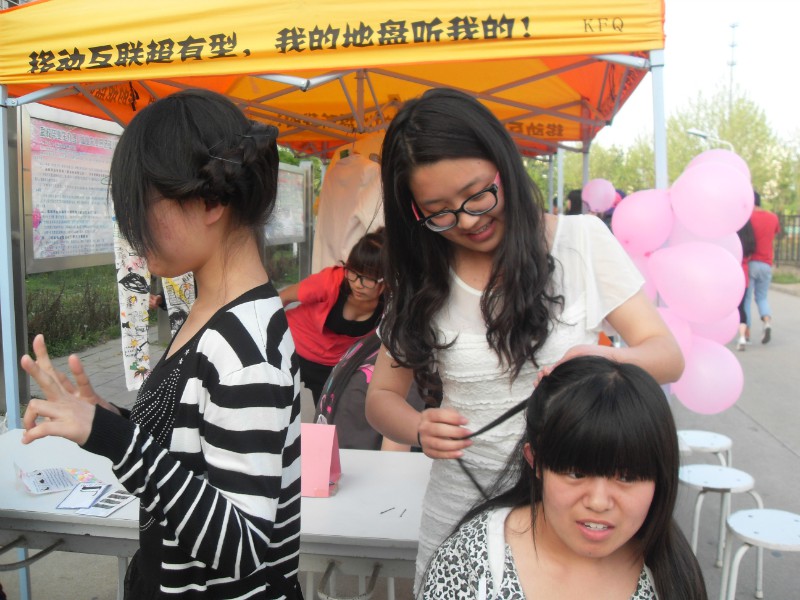 美丽街活动内容涉及花式盘发、美甲、瘦身养生、美容护肤、手工、服装搭配等方面。每个方面都有比较专业的“摊主”来跟同学们交流。值得一提的是,本次活动还有幸请到了校外专业人士来提供免费指导。此外,美丽街活动最吸引人眼球的是活动标语“管他男女几比几,我们心里只有你”。标语既俏皮又温馨,展现了趣味十足的外院文化。其中最受欢迎的“摊主”是女生花式盘发交流的11级英语本科专业的张云,她根据同学的脸型,头发长度等帮助同学编出适合自己的各式各样的发型,充分展现了女生独有的气质与内涵。美甲学习交流也毫不逊色,色彩鲜艳、光彩耀人的指甲则充分展现了0638太阳集团官网女生独有的青春与活力。参加活动的同学们脸上都洋溢着满意的微笑,使得这次活动更加丰富多彩。
