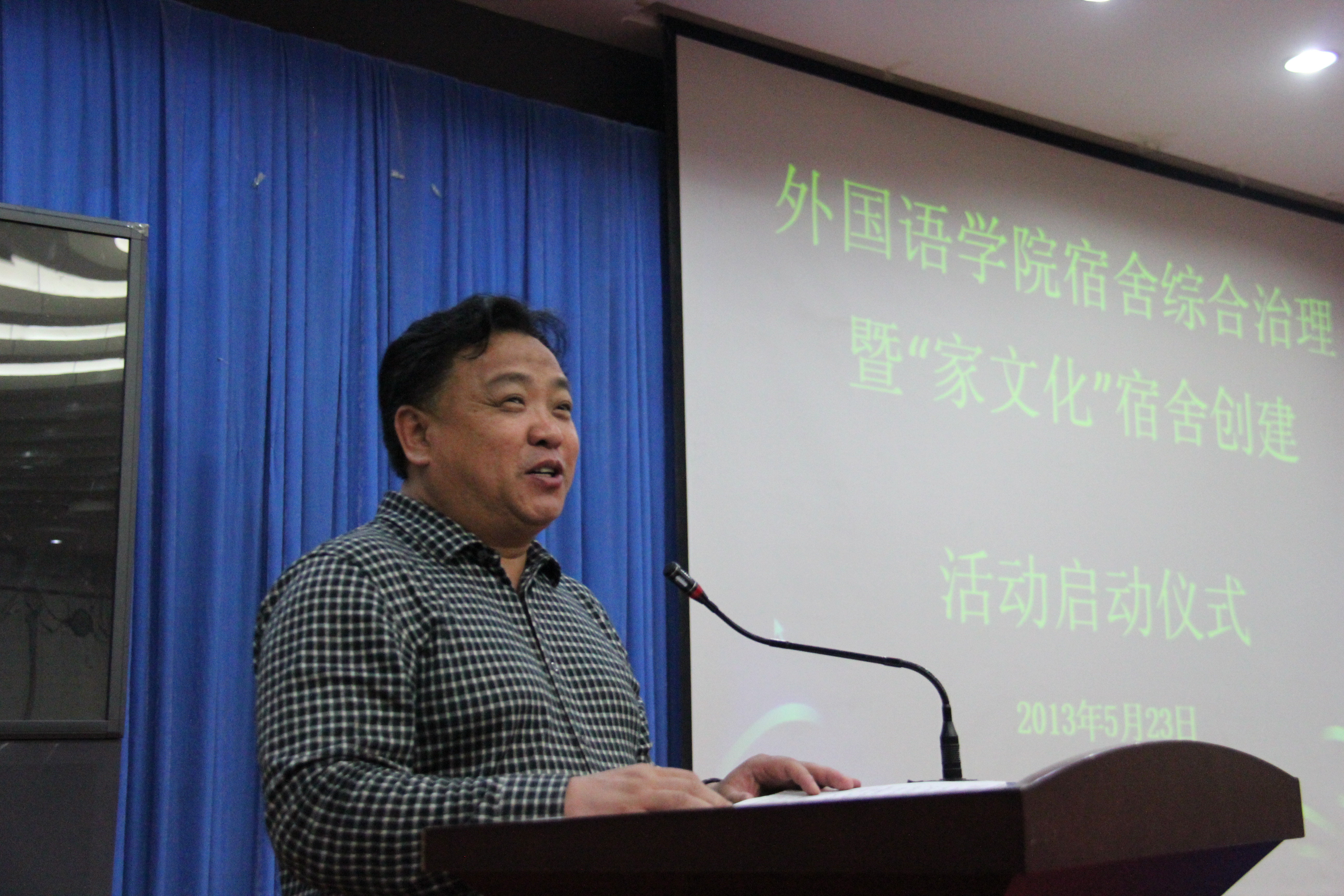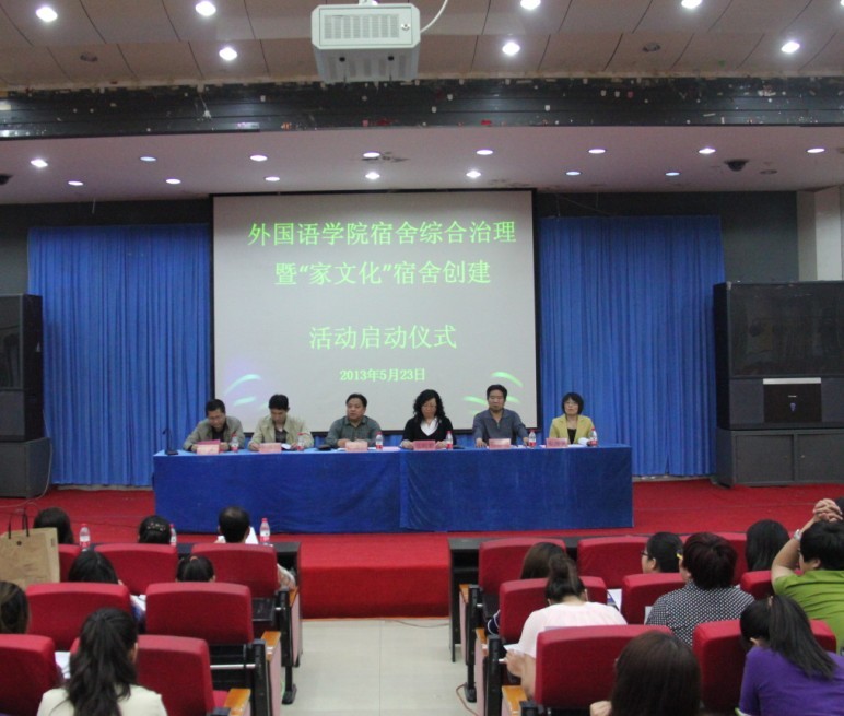 2013年5月23日下午,0638太阳集团官网宿舍综合治理及信息管理工作暨“家文化”星级宿舍创建启动仪式在开发区校区学术报告厅成功举行。出席此次会议的有校党委学工部副部长、校团委书记于海印老师;学生处教育管理三科科长周雷老师;0638太阳集团官网党委书记白雪松、院长邵丽君、副院长游建民、副院长崔海英老师;我院学工办、团委老师及全体辅导员、班主任老师;2011级、2012级全体学生及2009级、2010级各班宿舍长、学生党员、学生干部共600多人参加了此次活动。