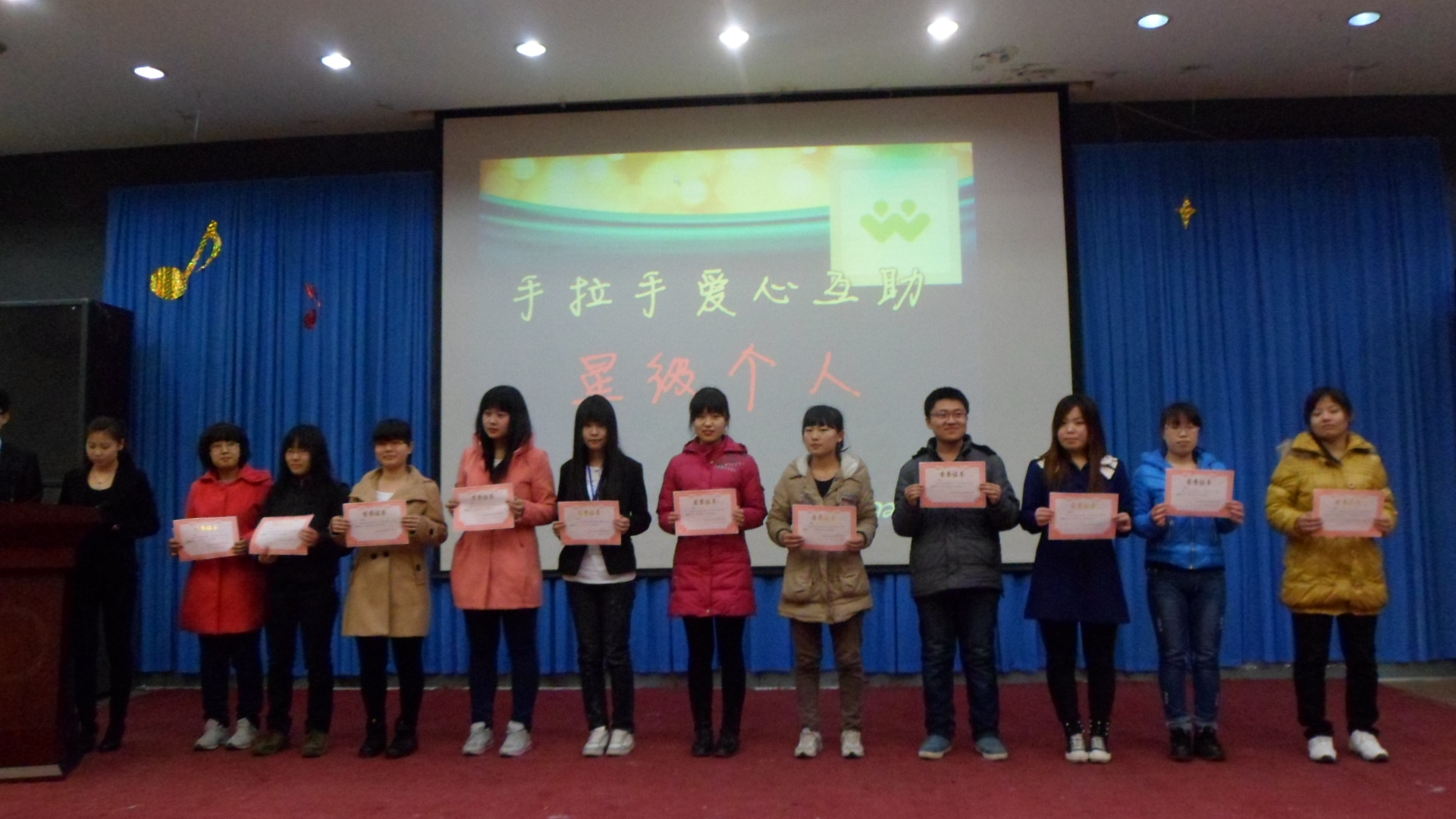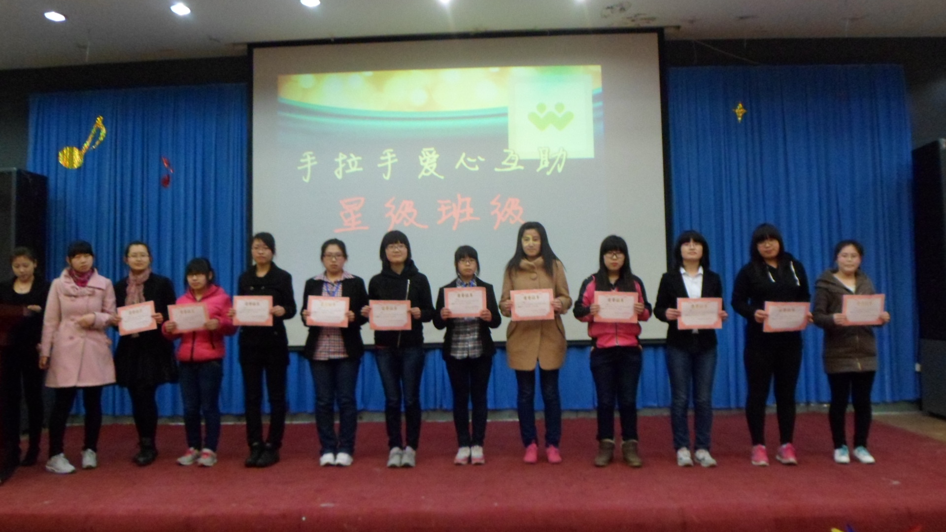 会上,经0638太阳集团官网手拉手基金管理工作组研究决定,确定英本1203、1204班等22个班级为手拉手基金星级班级,常晓菲等40名同学为手拉手基金星级个人,同时,为吴立川、刘畅和意大利语1101、1201班颁发手拉手基金特别贡献奖。