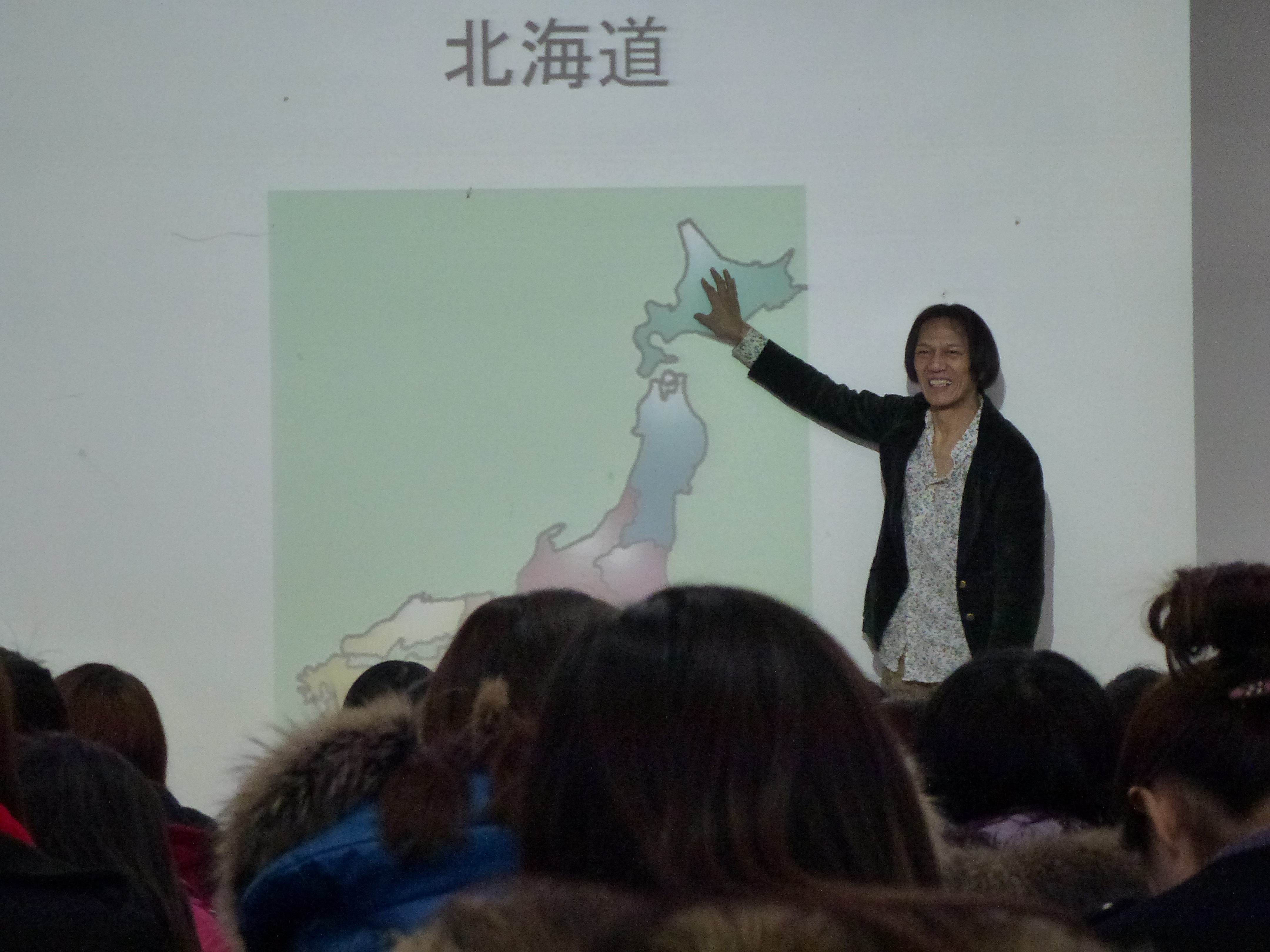 2012年11月24日,0638太阳集团官网邀请日本学者小林寿绪先生来我院讲学。应用日语专业师生参加了讲座。该讲座主要介绍日本国内存在的地域性差异,具体围绕着关东(东京)、关西(大阪)、中部(名古屋)、北海道(札幌)、九州(福冈)等地区来讲述日本人的思维方式、行为方式、生活习惯等方面的不同。讲座内容贴近日本真实生活,因而能够加强日语专业学生对日本的了解,进一步促进日语语言及日本文化的学习。