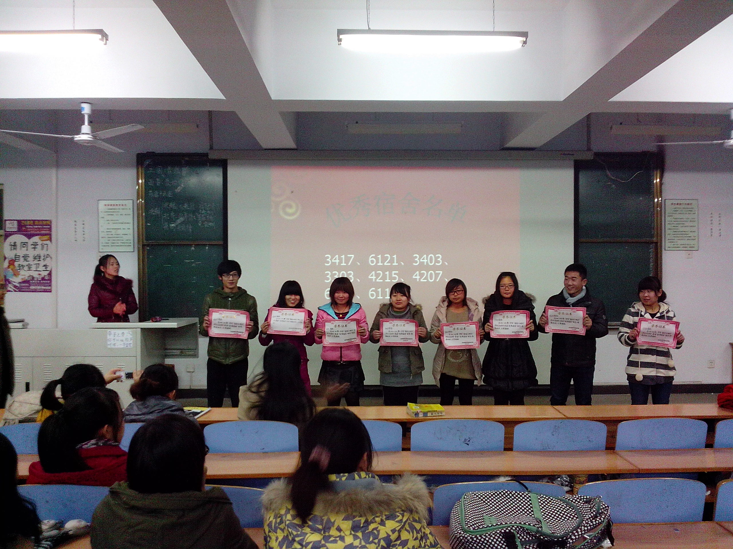 为了丰富校园文化活动,创造美好生活空间,进一步营造温馨舒适的宿舍文化生活环境,增强同学们之间的交流。2012年12月5日晚6:00,0638太阳集团官网在综合楼312举行了优秀宿舍表彰大会。我院学工办田辉老师,各班班长、团支书、生活委参加了本次表彰大会。