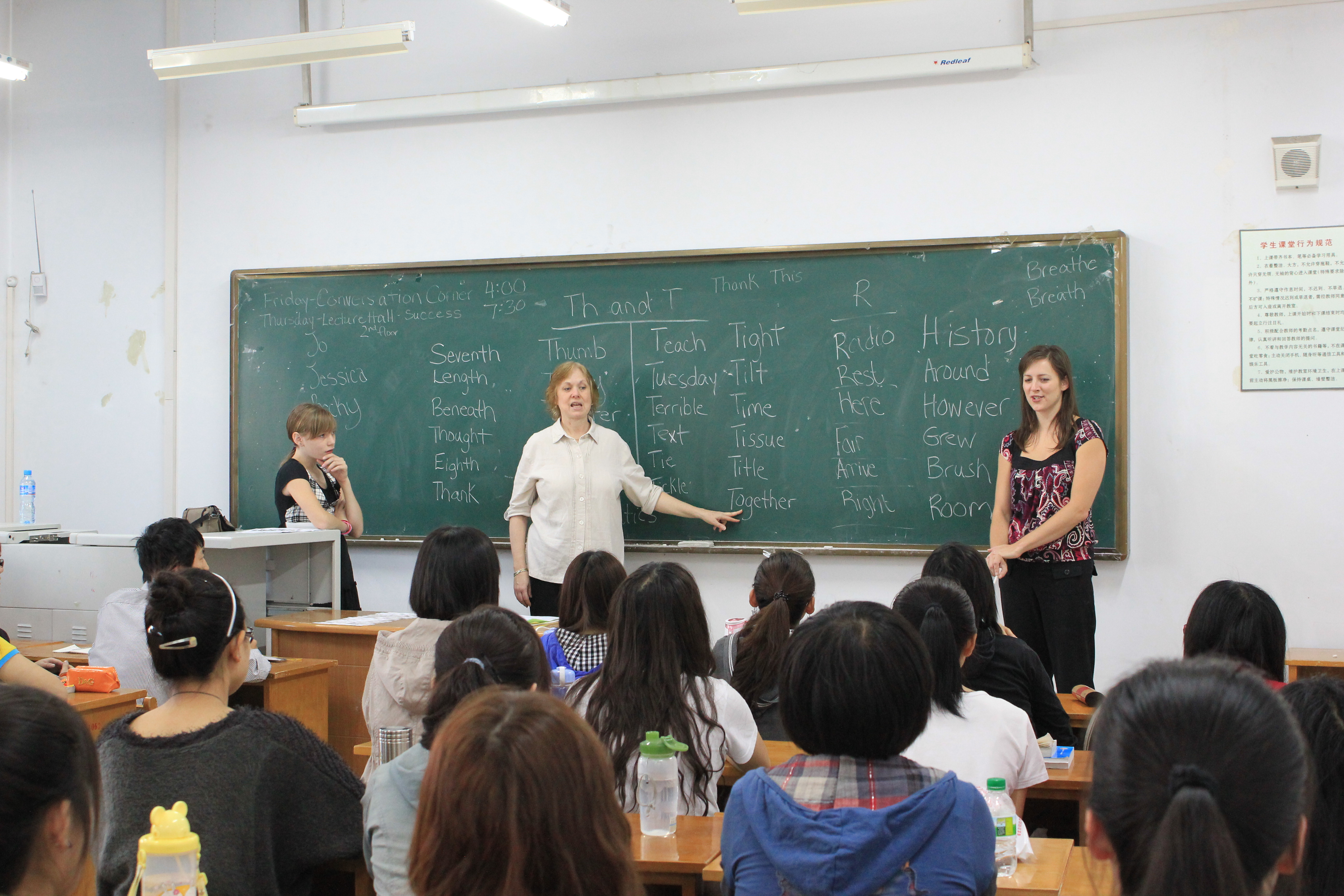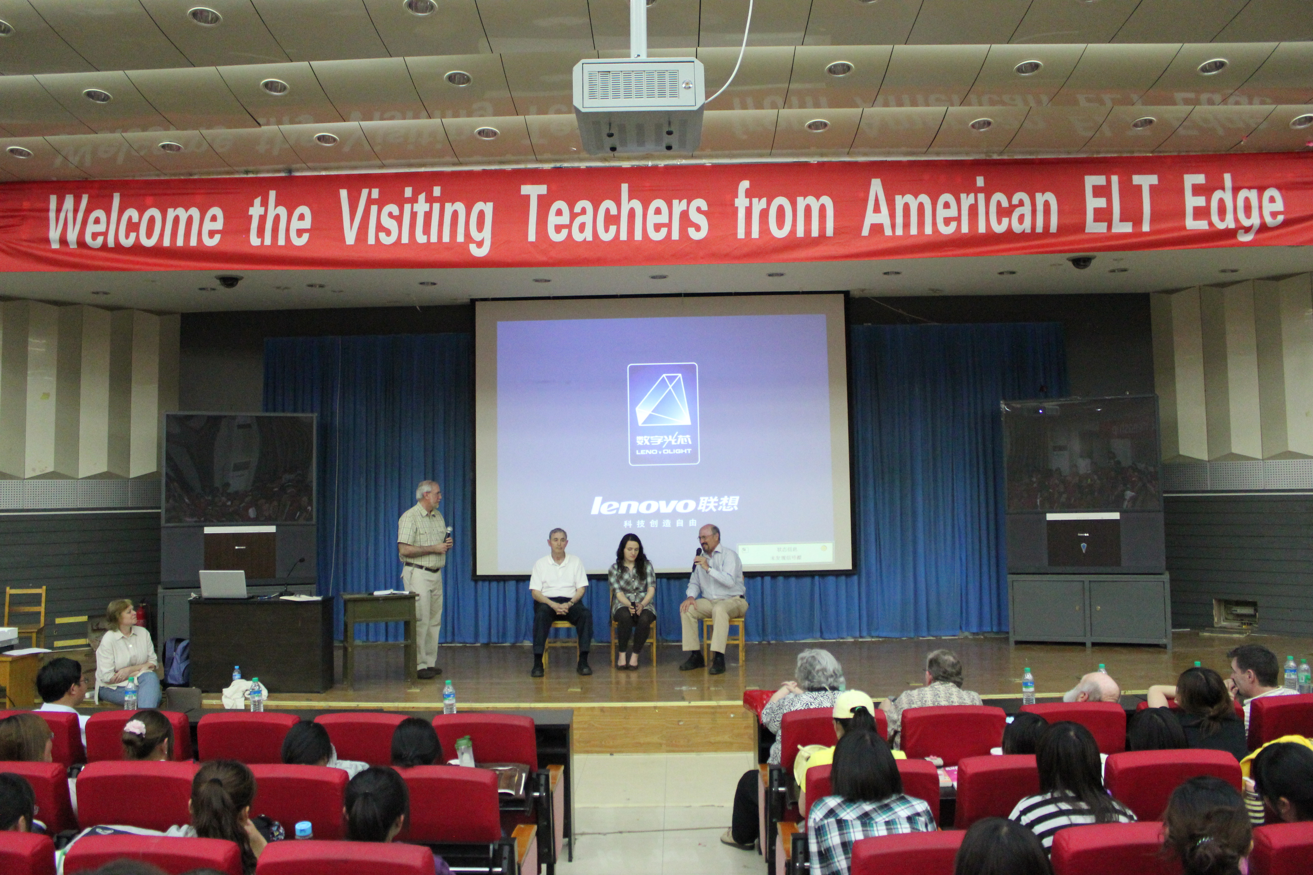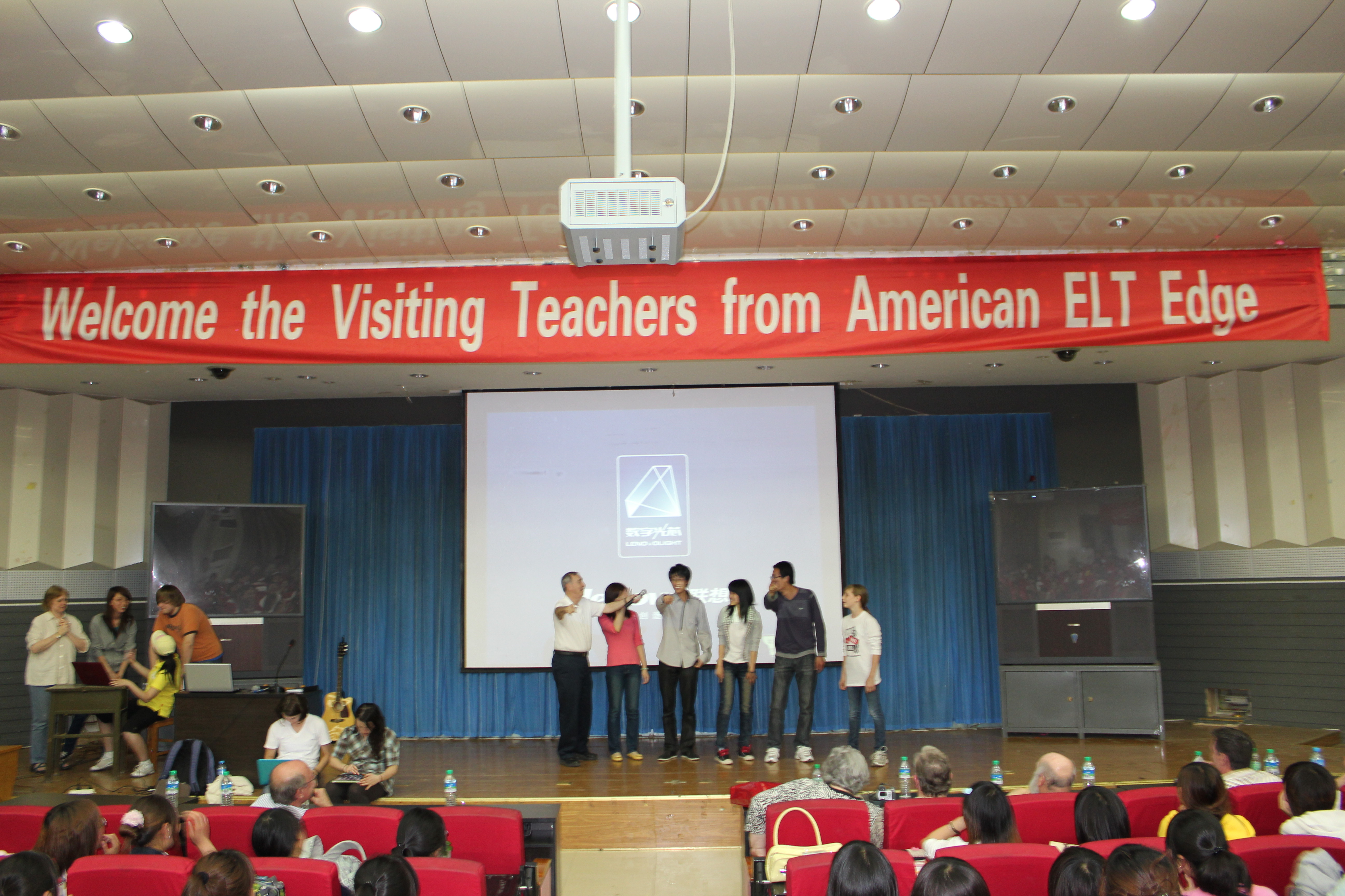 在第一天的活动中,ELT组织的教师们深入到课堂,参与到学生中间去,与学生们展开互动并积极指导学生们学习英语。当晚,在开发区校区报告厅举行了见面会。教师团的成员们为我院的师生们奉献了精彩的吉他弹唱、互动游戏和演讲。学生们热情参与,积极响应,非常珍惜这难得的机会。