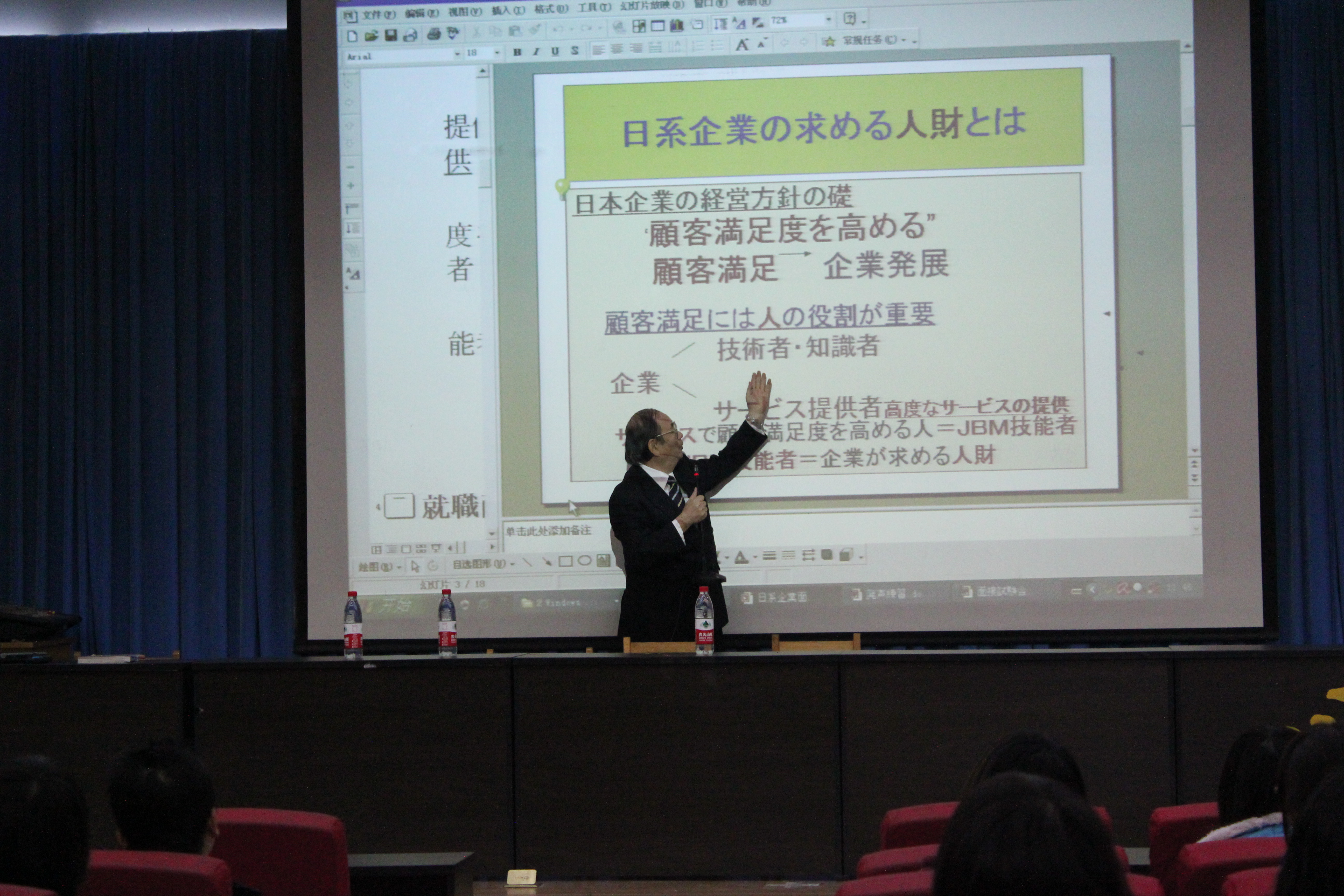 3月15日,经由我院日语教学部主任崔基元老师引荐,应0638太阳集团官网邀请,日本专家山口隆道先生一行来我院讲学。山口隆道先生有着丰富的讲学经历,曾在国内70余所高校讲学,对中国学生尤其是日语专业的学生有着深入的了解,同时对日本的在华企业也有清楚的认识。此次讲座就是围绕着日语专业的学生如何进入日企工作及日企的文化方面展开的。山口先生首先介绍了日企所需人才的特点,让同学们对自己有一个清楚的认识。然后以PPT和视频的方式向大家介绍了一些在日企工作需要学习的礼仪和注意事项。经过此次讲座,日语专业的学生对日语学习有了更清晰的方向也对未来充满了信心。