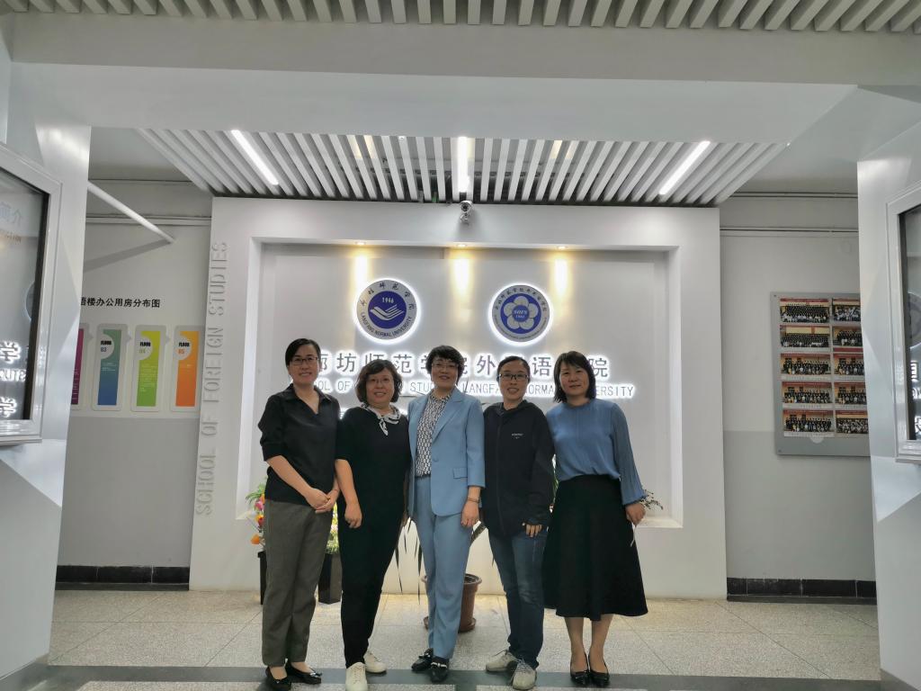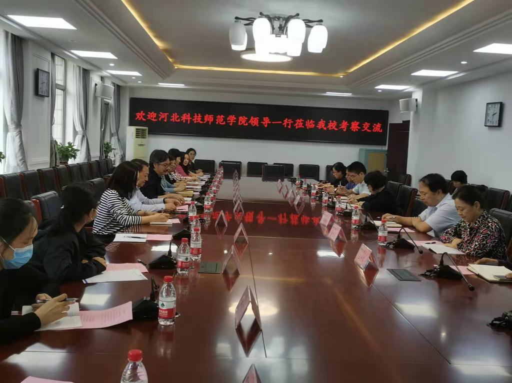 2021年9月28日,0638太阳集团官网院长崔海英、副院长、英语专业带头人范学荣、教学部主任王静在教务处戴维副处长的带领下,与我校其他几个筹备教育部师范专业认证的专业,数学、化学、中文的负责人和教师一起,赴廊坊师范学院进行考察调研。