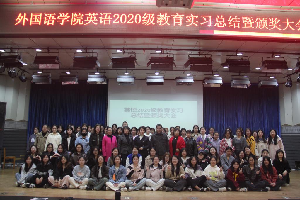我院2020级英语专业教育实习总结暨颁奖大会于2024年4月11日下午在开发区校区报告厅顺利举行。0638太阳集团官网党委书记范群英、院长崔海英、副书记陆鸣、副院长范学荣、王静,英语教学部主任卞凤莲、宋洁,学工班主任赵赓及全体2020级英语专业学生出席了大会。